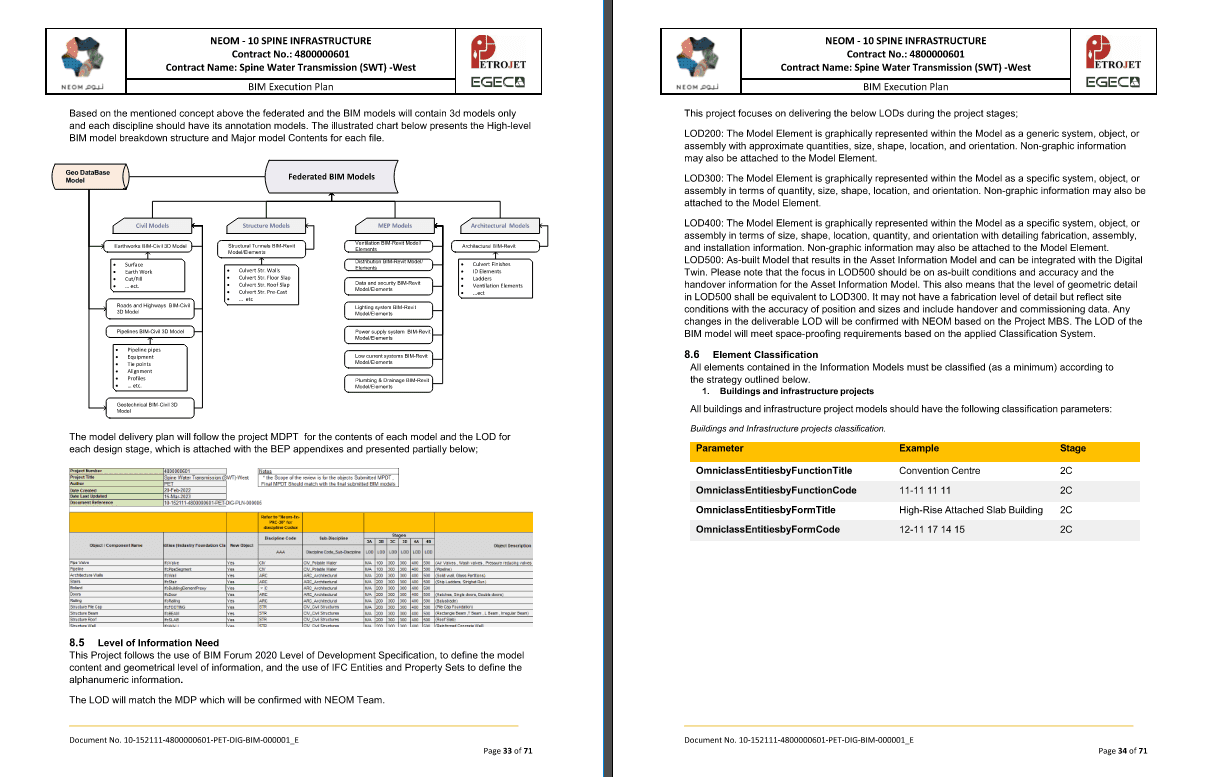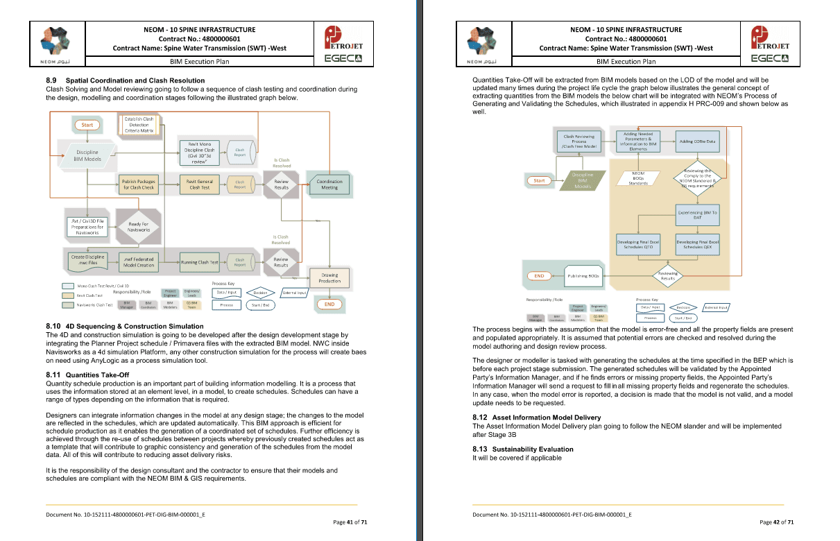 Bridging the gap between horizontal infrastructure and vertical construction requires a sophisticated strategic framework. The displayed extracts from Code A approved BIM Execution Plans (BEPs) for NEOM and RCJ represent the benchmark for large-scale digital delivery.