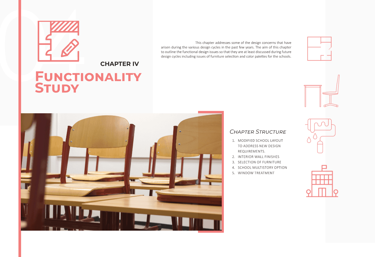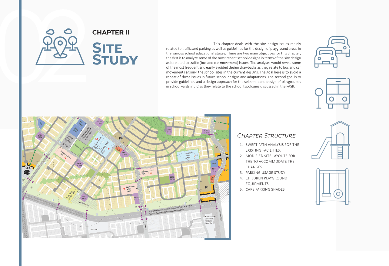 Under the supervision of Prof. Khaled Nassar, Developing a city-wide design standard requires a unique blend of architectural vision and technical documentation mastery. For the Royal Commission for Jubail and Yanbu (RCJ), I took the lead in drafting the Functionality Analysis Report, a high-level document designed to serve as the primary guideline for all new school developments in Jubail. Using a strategic, research-driven approach, I organized the report into eight distinct sections that cover the entire lifecycle of the design process. This structure ensures that every stakeholder—from the lead architect to the facility operator—understands the precise functional requirements and quality benchmarks expected by the Commission.