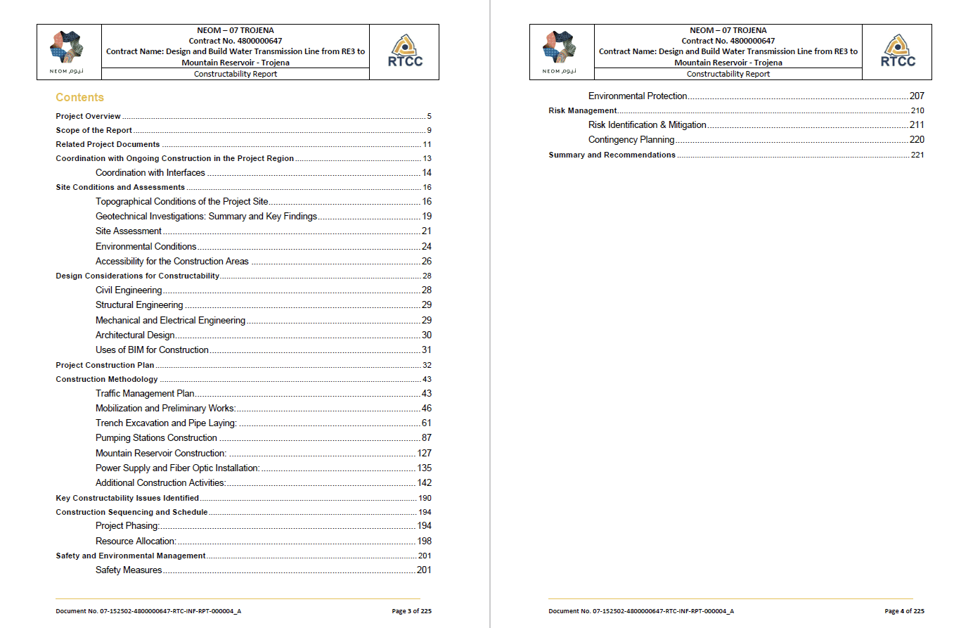 For the NEOM Trojena Water Transmission project, I authored a high-level Constructability Report that served as the primary integration document for all project stakeholders. This strategic publication synchronized the project’s schedule, procurement cycles, and execution plans into a unified technical roadmap. By analyzing method statements alongside risk management data and critical path activities, I provided NEOM with a comprehensive document that identifies potential bottlenecks and validates the physical feasibility of the pipeline’s delivery within the challenging Trojena terrain.