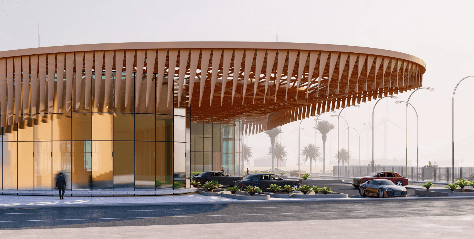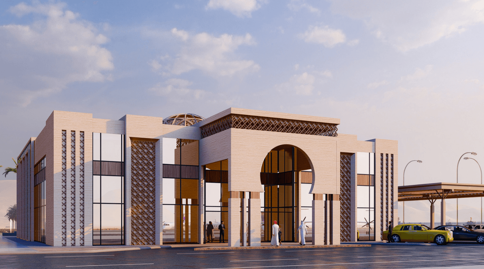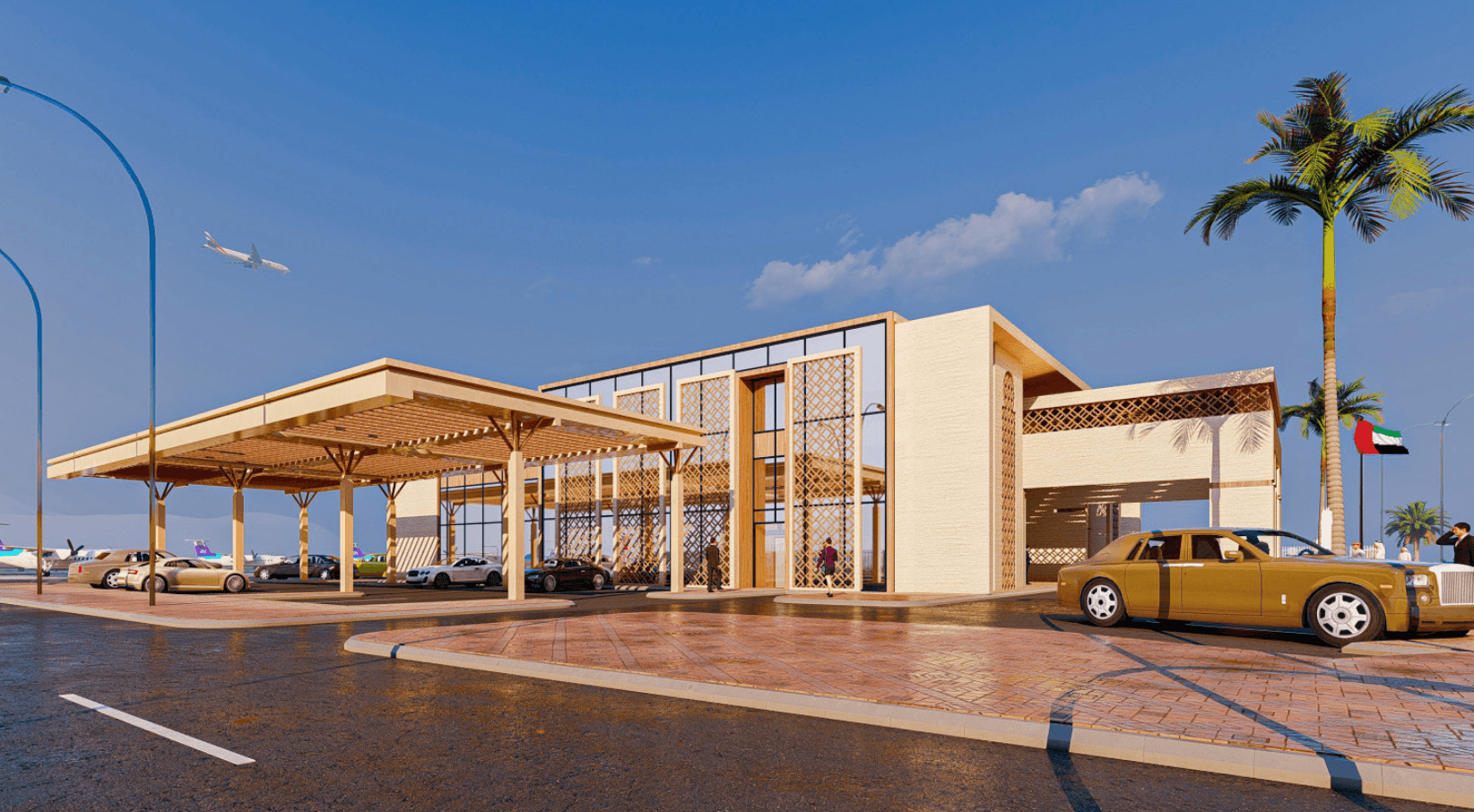 A bespoke architectural design concept for a high-security, luxury aviation terminal tailored to the exclusive requirements of VVIP travel in the UAE.